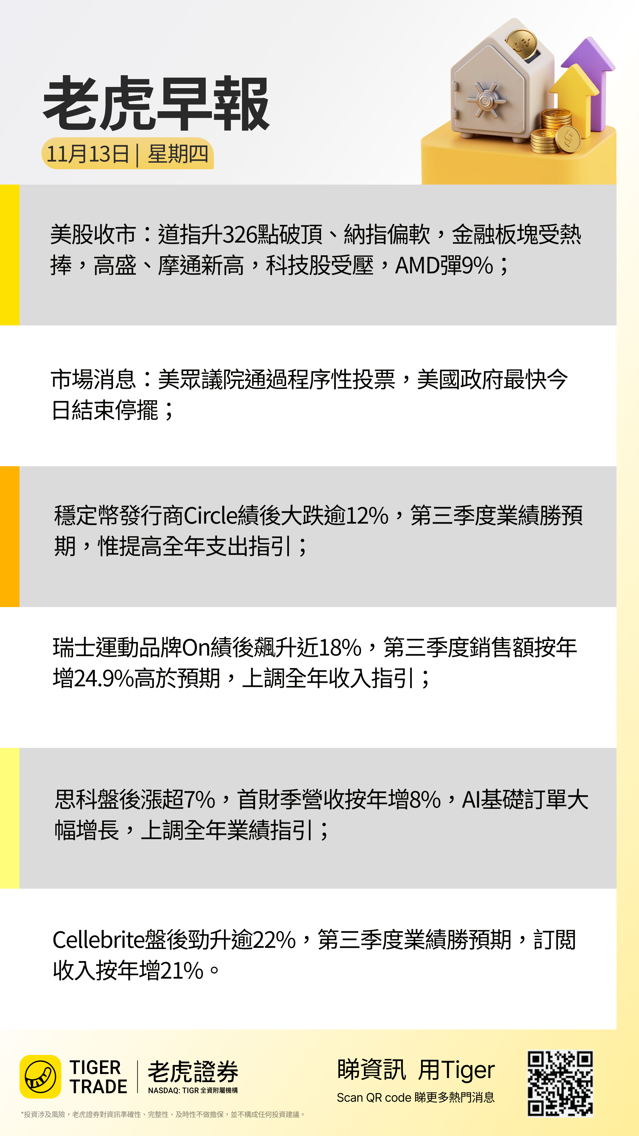 市場消息:美衆議院通過程序性投票,美國政府最快今日結束停擺;