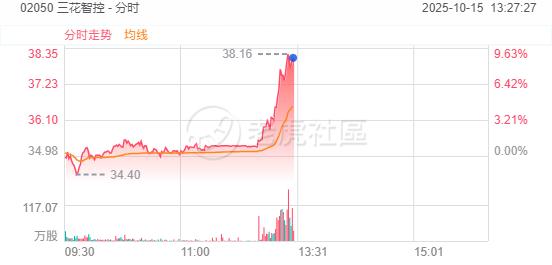 10月15日,港股機器人概念股午後拉昇,三花智控漲超8%,微創機器人-B漲超6%,極智嘉-W、優必選、德昌電機控股漲超4%。