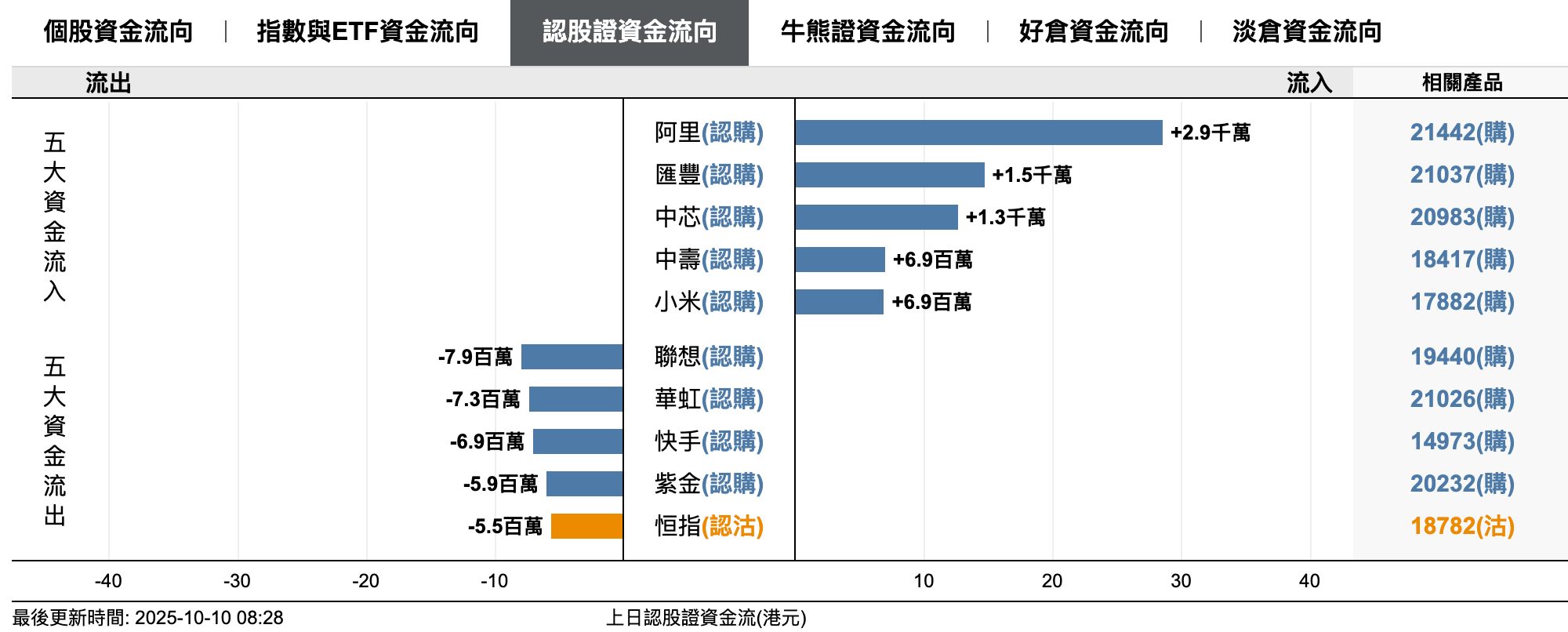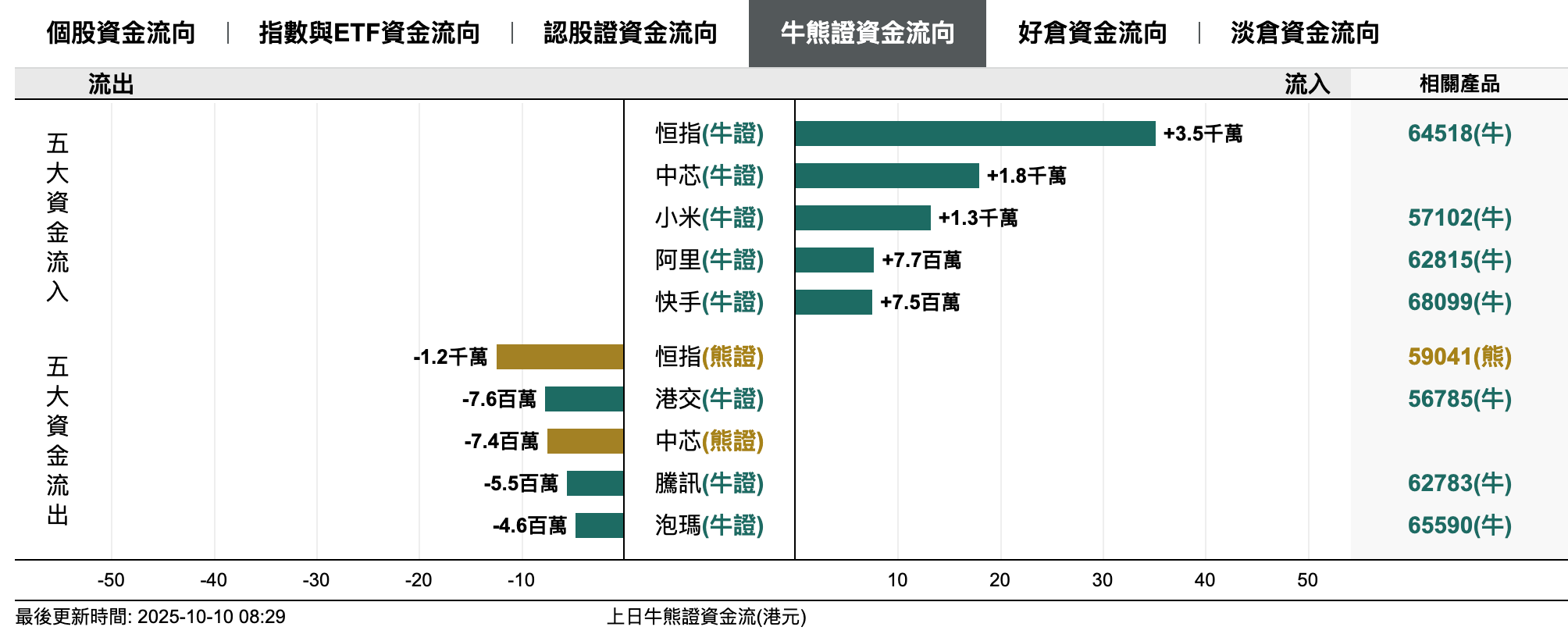 2、恒指牛熊證資金流
