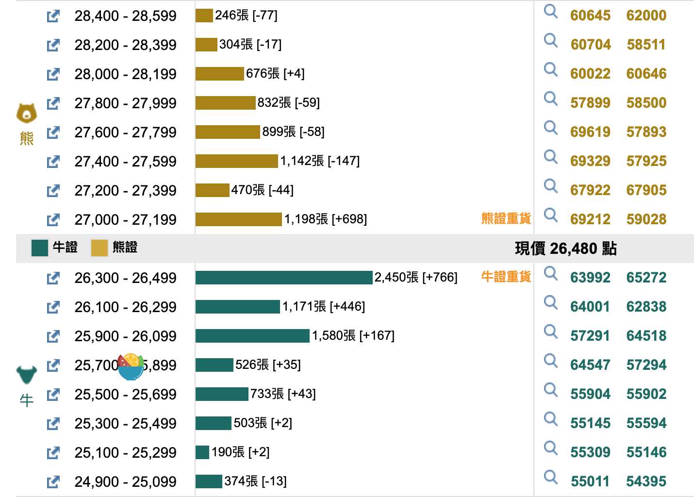 恒指上日即市曾跌穿26500點,好淡倉資金流或反映上日輪場投資者傾向趁機撈好倉,恒指牛 恒指摩通八六牛Q.C /熊 恒指摩通八九熊8.P 。