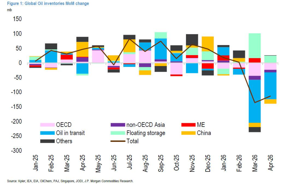 摩根大通大宗商品主管Natasha Kaneva在最新報告中明確指出,隨着霍爾木茲海峽封鎖前最後一批油輪預計於4月20日前後抵達目的地,全球供應鏈中的「封鎖前庫存」將徹底耗盡,石油衝擊正在全面爆發。