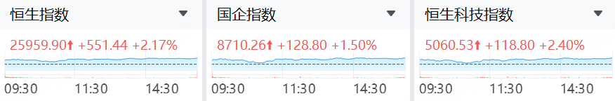 1. 指數綜述與分析:在權重科網與成長賽道帶動下,恒指、科指雙雙放量上行,分別上漲2.17%與2.40%,國企指數亦升1.50%。盤中消息面偏暖,宏觀不確定性下成長主線重獲關注,指數呈現「低開震盪後走強」的節奏,尾盤維持相對高位。