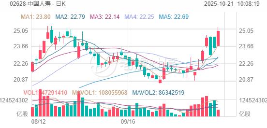 10月21日,港股保險股盤中延續強勢,中國人壽漲超6%,中國太平、新華保險漲超4%,中國平安、中國太保漲超3%。