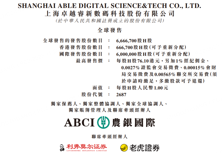 11月28日,卓越睿新於11月28日至12月3日招股,公司擬全球發售666.67萬股H股,香港公開發售佔10%,國際發售佔90%(可予重新分配)。每股發售價62.26港元-76.10港元,每手100股H股,預期H股將於12月8日開始在聯交所買賣。