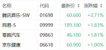 盤面上,AI概念股普漲,智譜漲7.6%,MINIMAX-WP漲2.9%。洛陽鉬業、寧德時代將納入恒生指數成份股,均升逾1%。阿里巴巴、百度、吉利汽車、蔚來跌超1%,網易、天齊鋰業升逾1%。此外,因春節假期,港股今日下午開始休市。