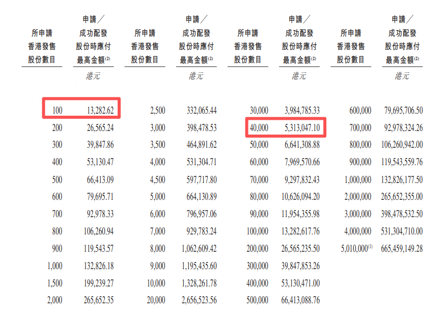 乙組門檻為4萬股,申購所需資金約531.31萬港元。