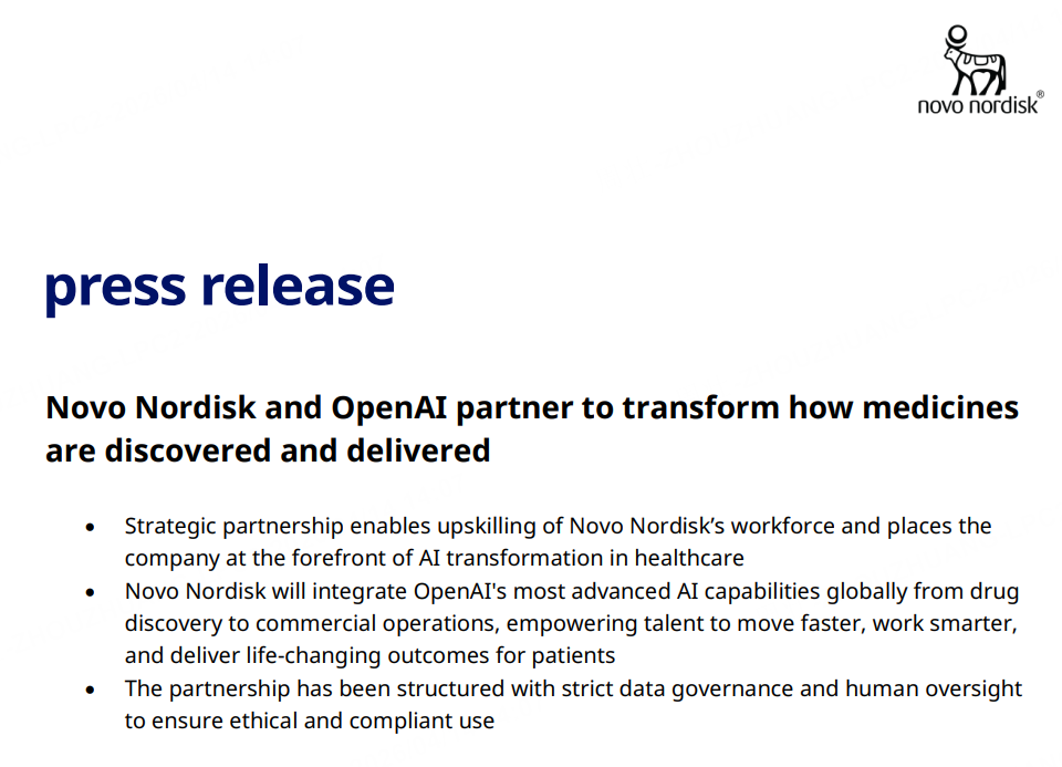 4月14日,諾和諾德美股夜盤短線拉升,現升逾2%!該公司宣佈與OpenAI合作,旨在革新藥物研發方式。