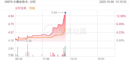 10月6日,港股生物醫藥股午後拉昇,永泰生物-B漲近14%,科濟藥業-B漲超10%,騰盛博藥-B漲超5%,藥明巨諾-B、維升藥業-B漲超3%。