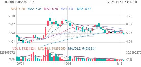 11月17日,港股蘋果概念股普跌,鴻騰精密跌超5%,丘鈦科技、藍思科技跌超3%,舜宇光學科技、比亞迪電子跌超2%。
