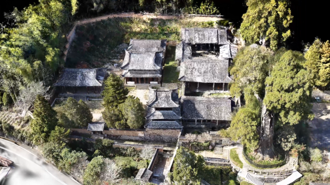 通過 3D 高斯技術,群核空間智能平台 Aholo 完成了對江南古寺時思寺的空間重建。