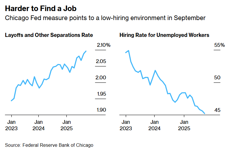 在美國找工作更難了——芝加哥聯儲的指標顯示9月處於低招聘環境