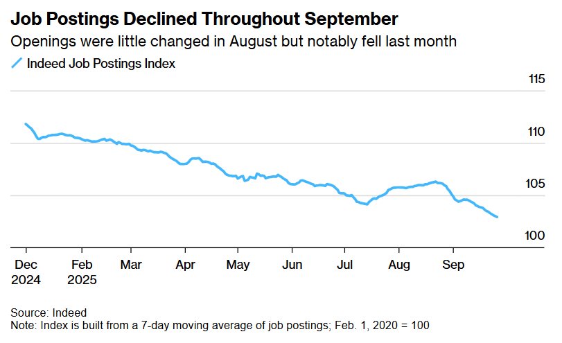 儘管政府數據最受信任,但職位空缺調查常因回應率低、修訂幅度較大而飽受市場批評。招聘網站Indeed的另一項每日基準指數顯示,8月職位空缺變化不大,而9月降幅更為明顯。
