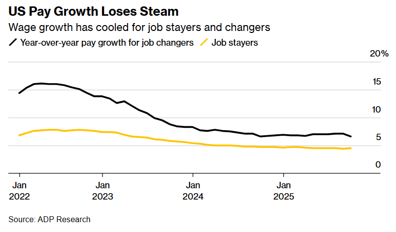美國薪資增速失去強勁動能——跳槽者與留任者的薪資增長均已顯著降溫