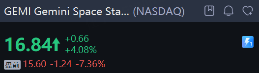 Gemini Space Station Inc 跌超7%。三季度淨收入 4977.5 萬美元,同比增長 104.4%,環比增長 51.8%,高於市場預期的 4684 萬美元;但在收入大幅增長的同時,淨利潤卻依然為負,虧損也幅度同比增長 76.9% 至 1.595 億美元,每股收益 -6.67 美元,大幅高於 -0.767 美元的市場預期。