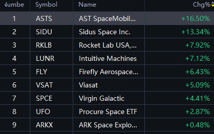 Space Stocks Shined. AST SpaceMobile up 16%; Sidus Space up 13%; Rocket Lab and Intuitive Machines up 7%; Firefly up 6%.