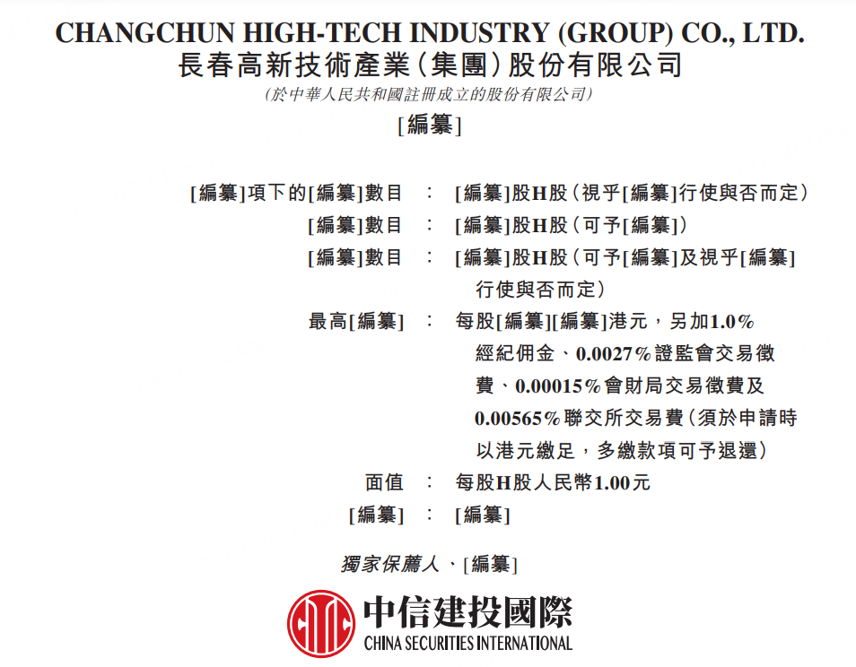 9月29日,據港交所文件,長春高新技術產業(集團)股份有限公司向港交所提交上市申請書,獨家保薦人為中信建投國際。