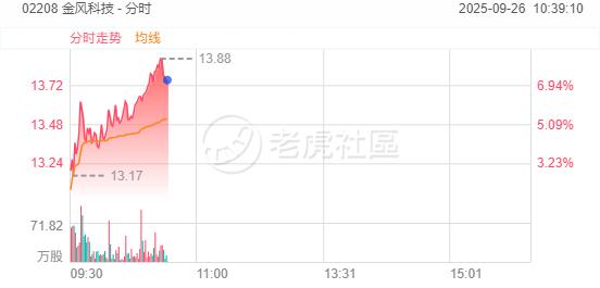 9月26日,港股風電股持續上行,金風科技漲超7%,中國高速傳動漲超6%,瑞風新能源、龍源電力、大唐新能源漲超5%。