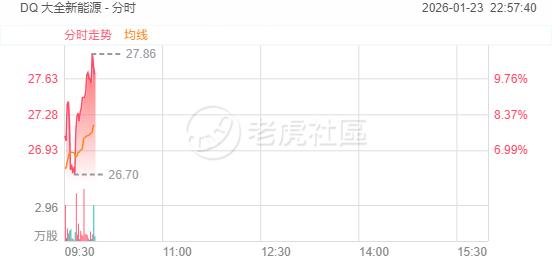 1月23日,部分光伏、太陽能概念股盤中上漲,大全新能源、晶科能源升逾10%,阿特斯太陽能升逾7%。