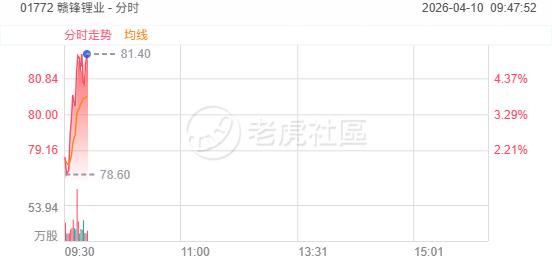 4月10日,港股鋰電池板塊集體上漲,贛鋒鋰業漲近5%,天齊鋰業升逾4%,寧德時代、中創新航、天能動力升逾3%。