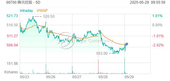 騰訊旗下騰訊混元發布並開源語音數字人模型,股價曾跌穿10天線(現處約514元)。 騰訊購 13851/沽 13910。