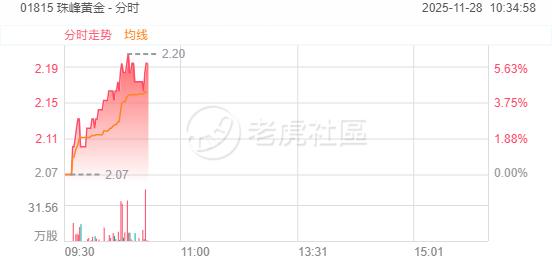 11月28日,港股黃金股盤中上漲,珠峯黃金、靈寶黃金漲超5%,潼關黃金、中國黃金國際、紫金黃金國際 、赤峯黃金漲超3%,山東黃金、紫金礦業等跟漲。