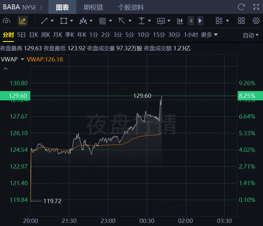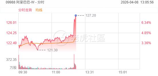 4月8日,阿里巴巴-WH股午後直線拉升,升逾7%;阿里巴巴美股夜盤升逾8%。