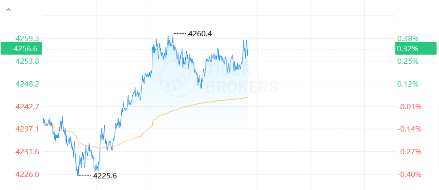 黃金期貨上漲,截止發稿,漲0.32%,報4256.6美元/盎司。