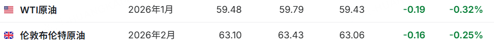 原油期貨下跌,截止發稿,WTI原油跌0.32%,報59.48美元/桶;布倫特原油跌0.25%,報63.10美元/桶。