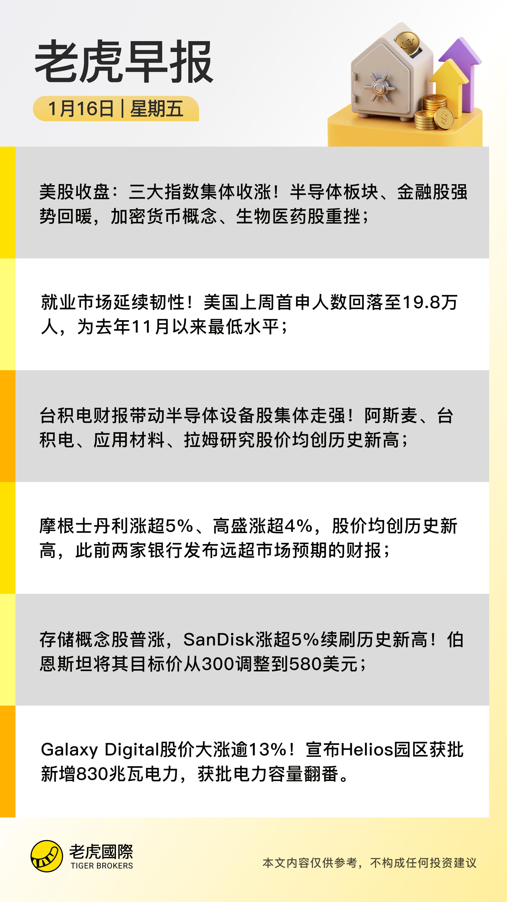 摩根士丹利升逾5%、高盛升逾4%,股價均創歷史新高,此前兩家銀行發布遠超市場預期的財報;