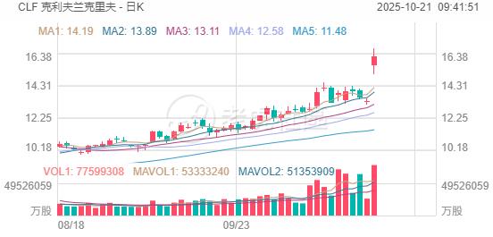 鋼鐵製造商克利夫蘭克裏夫隔夜股價大漲逾21%;該公司昨日發佈第三季度財報,數據顯示,三季度營收同比增長3.5%;經調整的息稅折舊攤銷前利潤(EBITDA)高於華爾街預期;此外,在公司第三季度業績報告中,公司宣佈進軍稀土領域,正探索從鐵礦石礦牀中提取稀土礦物的可行性。