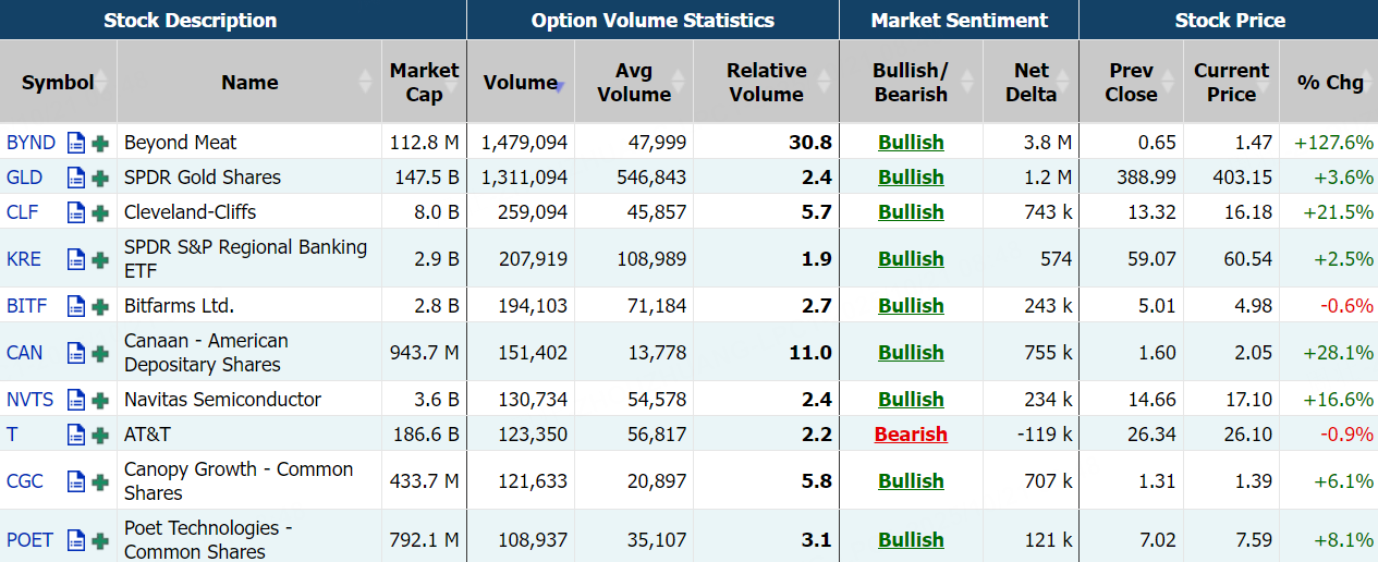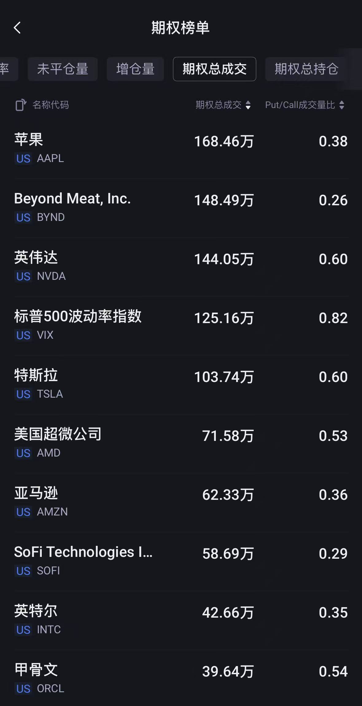 週一,期權市場總成交量5200.06萬張合約,低於90日均量;蘋果當日期權成交168.46萬張,看漲期權佔比攀升至72.5%;Beyond Meat、克利夫蘭克裏夫當日期權分別成交147.91萬張、25.91萬張,多張Call單均現翻倍大漲>>