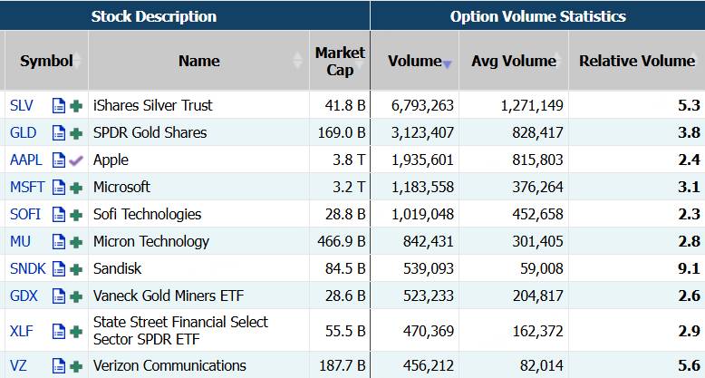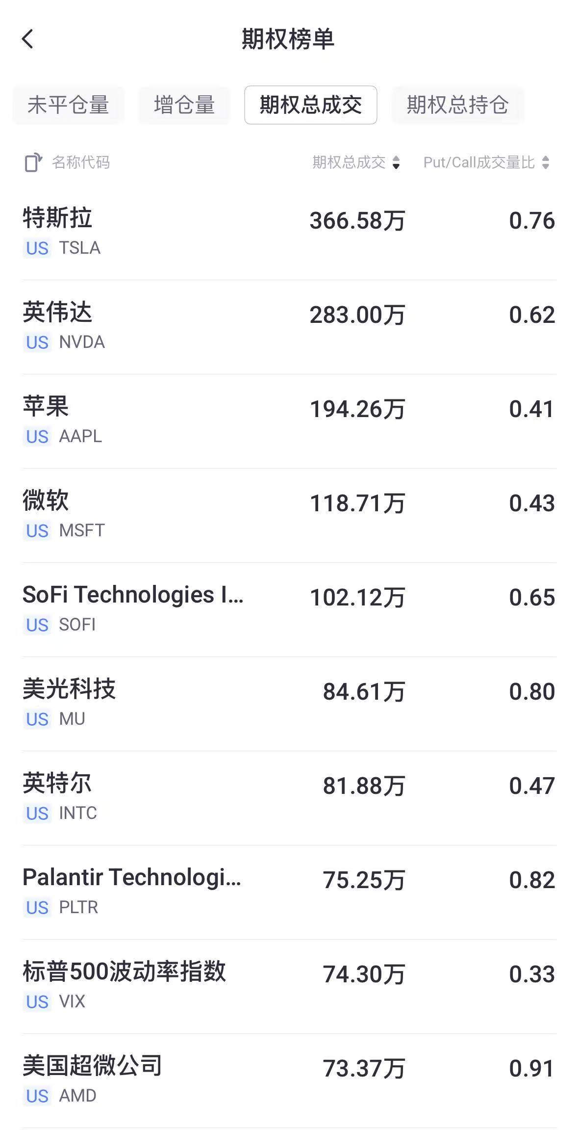 期權市場總成交量76,104,217張合約,其中看漲期權佔比57%。