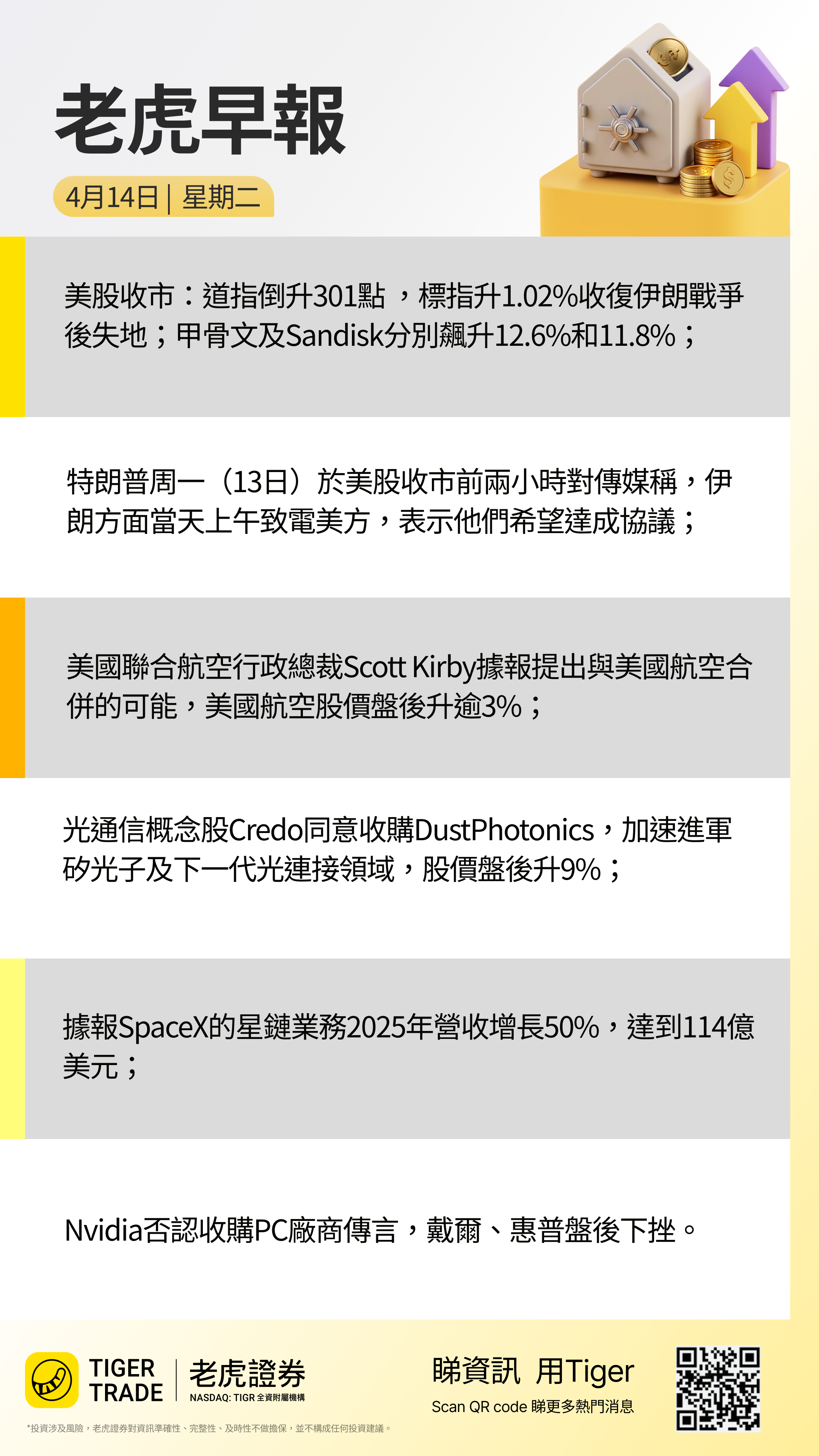業績報告:花旗、摩根大通、富國銀行盤前公布業績。