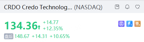 光通信概念股Credo Technology Group漲12.35%,連續第二個交易日升逾10%。消息面上,投行傑富瑞首次覆蓋並給予該公司「買入」評級。