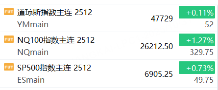 10月31日,美股三大股指期貨上漲,截止發稿,道指期貨漲0.11%,納指期貨漲1.27%,標普500指數期貨漲0.73%。