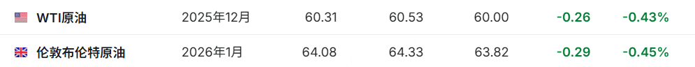 原油期貨下跌,截止發稿,WTI原油跌0.43%,報60.31美元/桶;布倫特原油跌0.45%,報64.08美元/桶。