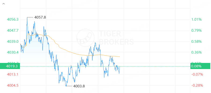 黃金期貨上漲,截止發稿,漲0.08%,報4019.3美元/盎司。