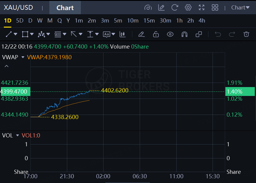 Spot gold crosses $4,400 per ounce at one time, while spot silver climbed 3.26% to hit a historic high of $69.37.