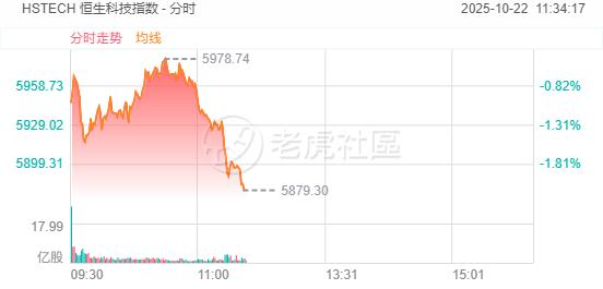 10月22日,港股三大指數短線走低,恒生科技指數日內跌超2%。