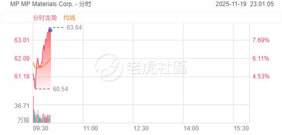11月19日,美股稀土概念股盤中拉昇,MP Materials漲超8%,The Metals漲超7%,Energy Fuels漲超6%,Critical Metals漲超4%。