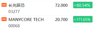 此外,「杭州六小龍之一」MANYCORE TECH群核科技上市首日高開超171%;CMOS圖像傳感器(CIS)供應商長光辰芯高開超80%。