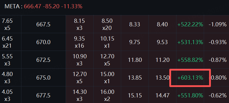 Meta認沽合約的成交價格集體飆升,最高漲幅超600%!
