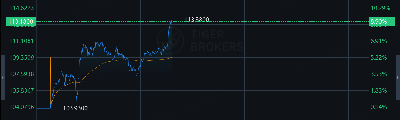 1月27日周二,現貨白銀恢復漲勢,盤中大升逾9%,重新站上113美元。