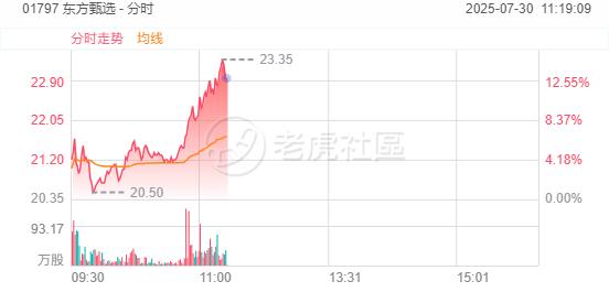 7月30日,東方甄選再飆近15%,月內股價已累升逾九成!機構看好公司自營品發展空間。