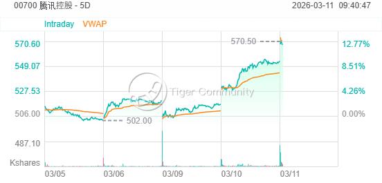 騰訊上日升逾7%,創去年3月以來最大單日升幅,市場關注集團人工智能相關發展,騰訊購騰訊摩通六七購B.C /沽騰訊摩通六八沽A.P;