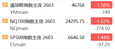 3月9日,美股三大股指期貨下跌,截止發稿,道指期貨跌1.58%,納指期貨跌1.52%,標普500指數期貨跌1.44%。