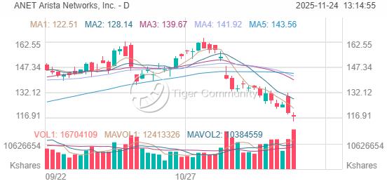 這家因 AI 數據中心對其網絡設備的強勁需求而在今年早些時候大漲的公司,如今僅 11 月就已下跌了近 26%。第三季度盈利雖高於預期,但其對第四季度銷售的令人失望的指引使投資者對 Arista 的情緒急轉直下。