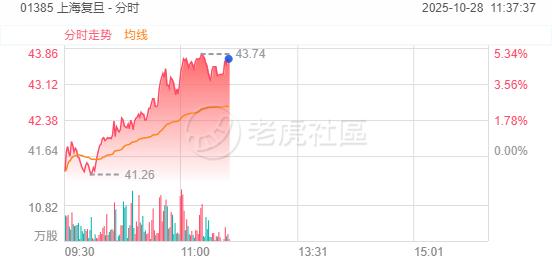 10月28日,港股半導體板塊盤中拉昇,上海復旦漲近5%,華虹半導體漲超3%,中芯國際漲近2%。