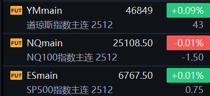 美股三大期指短線走低,納指期貨轉跌,道指期貨、標普500指數期貨漲幅收窄至不足0.1%;貴金屬期貨短線走高,COMEX黃金期貨漲0.70%,報3895.3美元/盎司;COMEX白銀期貨漲近3%,報47.725美元/盎司。