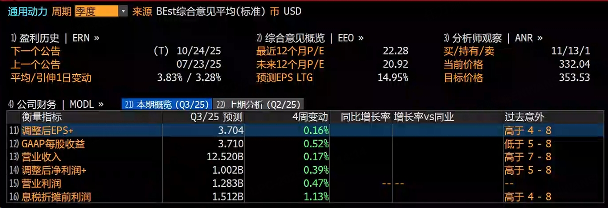 在財報發佈前,根據彭博分析師預期,通用動力三季度稀釋後每股收益(EPS)將達 3.70美元。過去四個季度中,該公司有三次盈利超出市場預期,僅有一次未達預期。